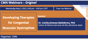 Developing Therapies for Congenital Muscular Dystrophies | Wednesday May 3, 2023 | 3:00 pm–4:00 pm CEST / 9:00 am–10:00 am EDT Read more here