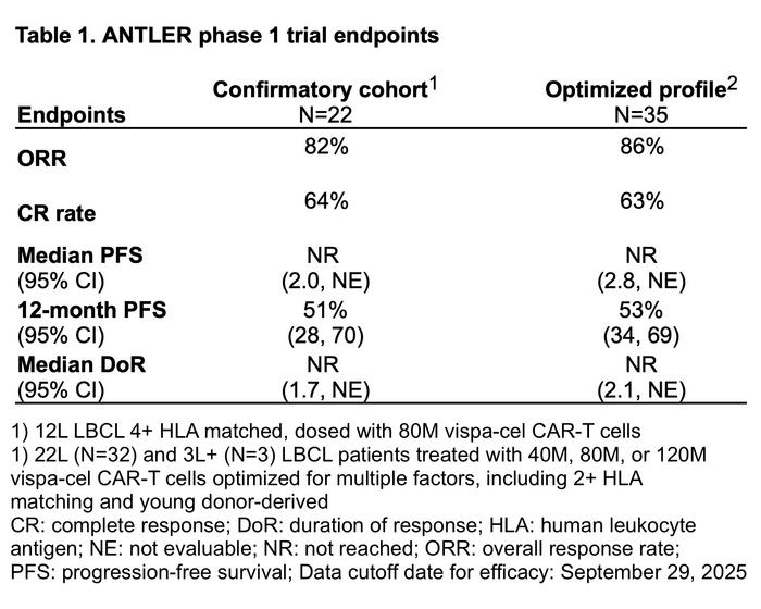 The ANTLER Phase 1 clinical trial evaluated vispacabtagene regedleucel (vispa-cel, formerly CB-010) in 84 patients with relapsed or refractory B-cell non-Hodgkin lymphoma, with particular focus on a 22-patient confirmatory cohort of second-line large B-cell lymphoma patients who had not previously received CD19-targeted therapy.